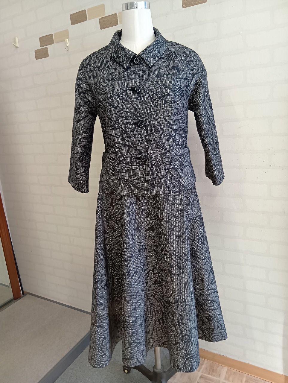 紬素材のツーピース。