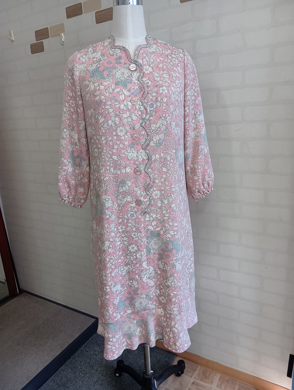 ピンクの花柄小紋で作ったワンピース。
