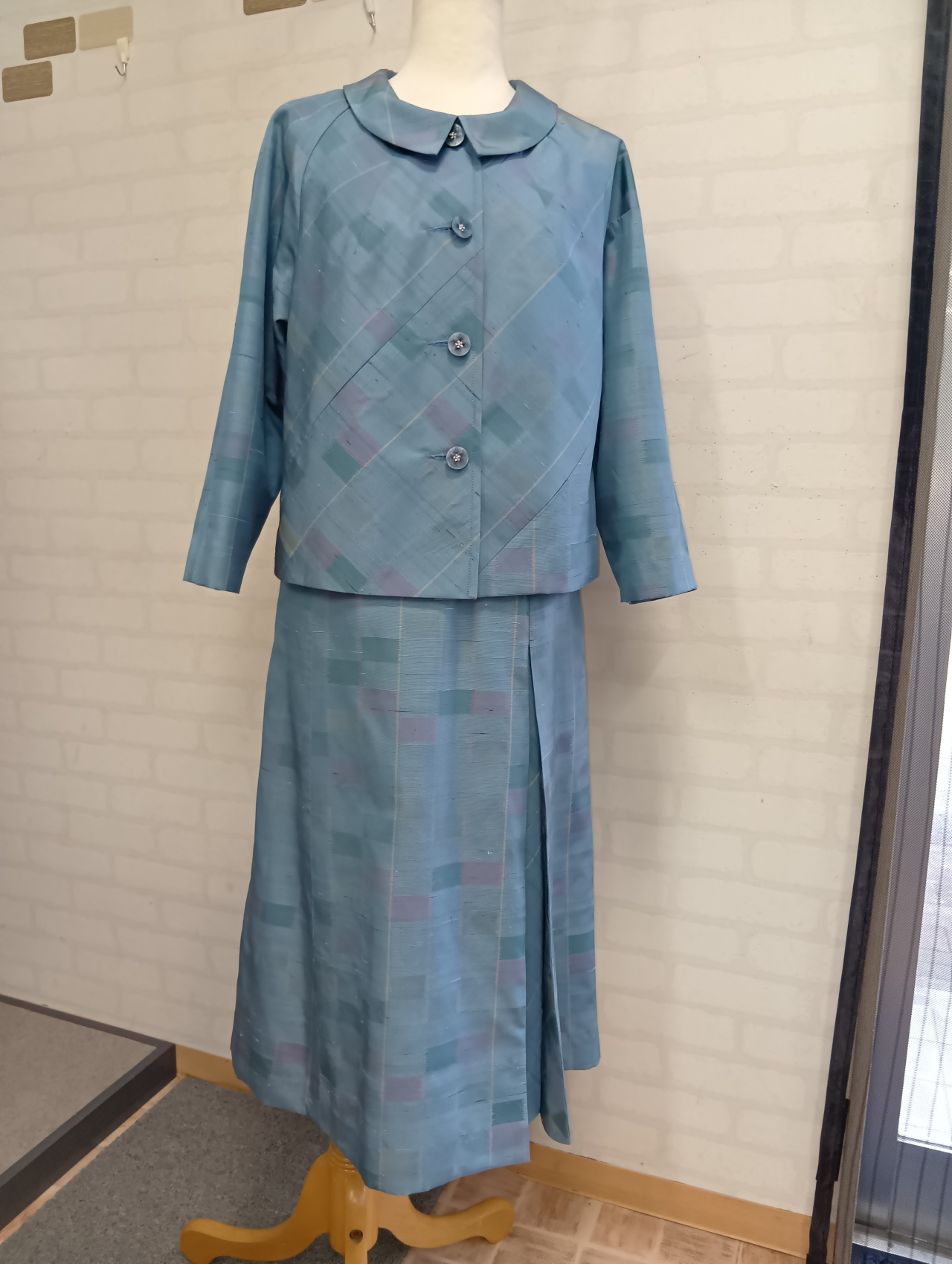 紬の長着のスーツ。