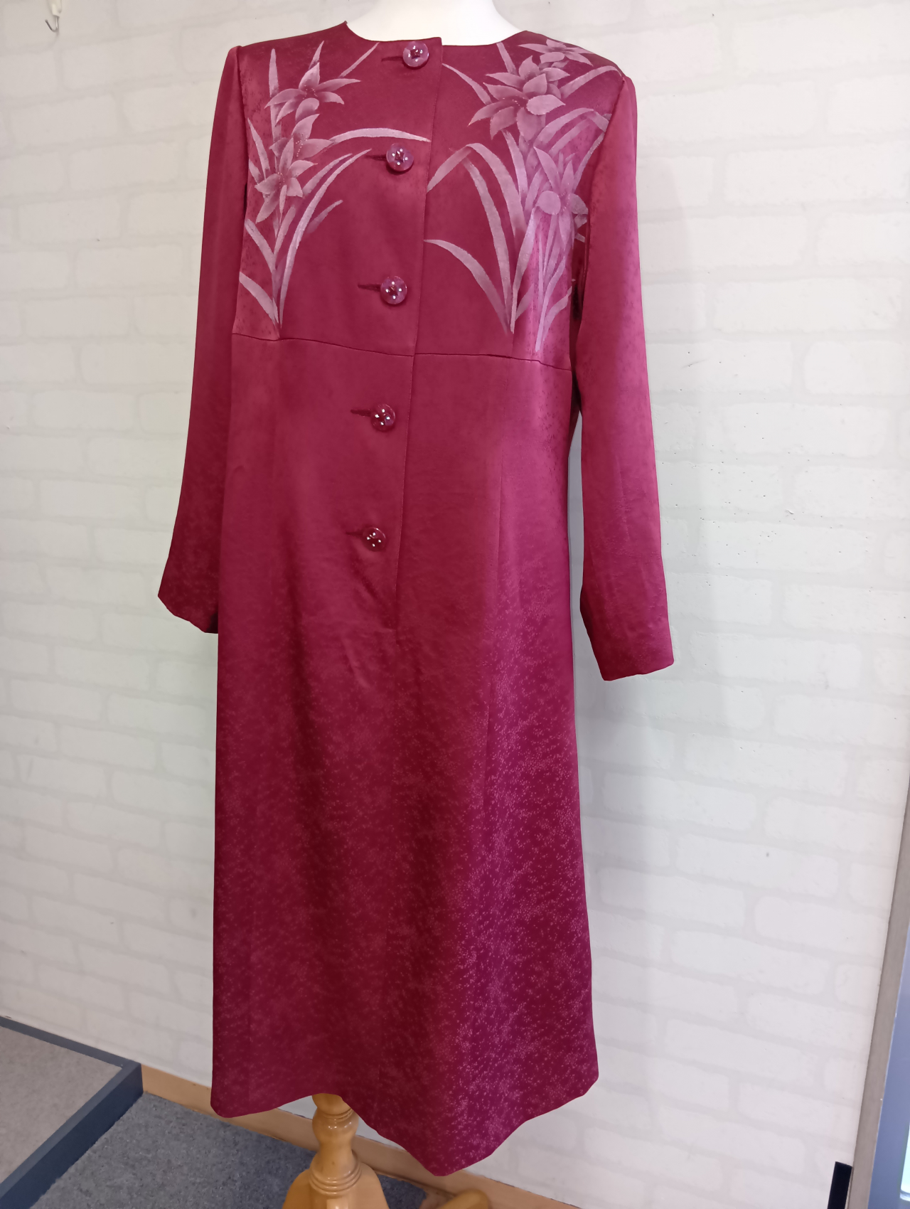 白ゆり柄の附下をもちいてワンピースを