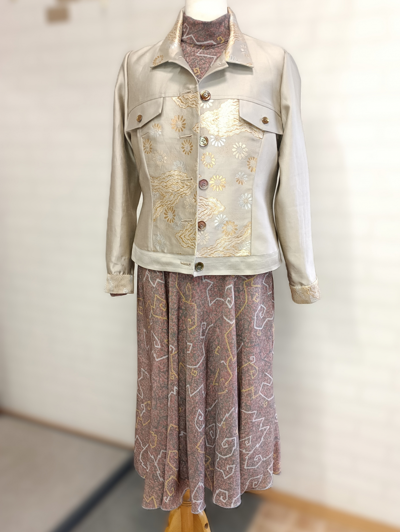 金糸の帯でGジャン風デザインのジャケットを作りました。